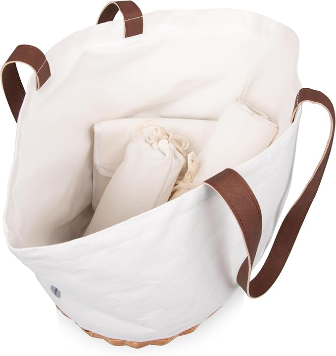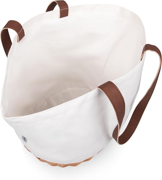 2-Person Picnic Basket Tote | Wicker Base & Canvas Body | Large-Capacity Portable Handbag for Outdoor Lunch and Travel