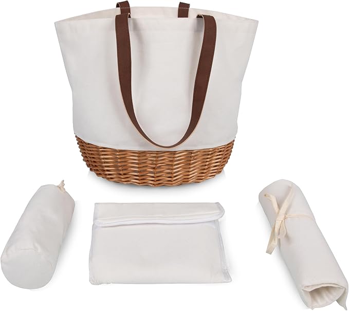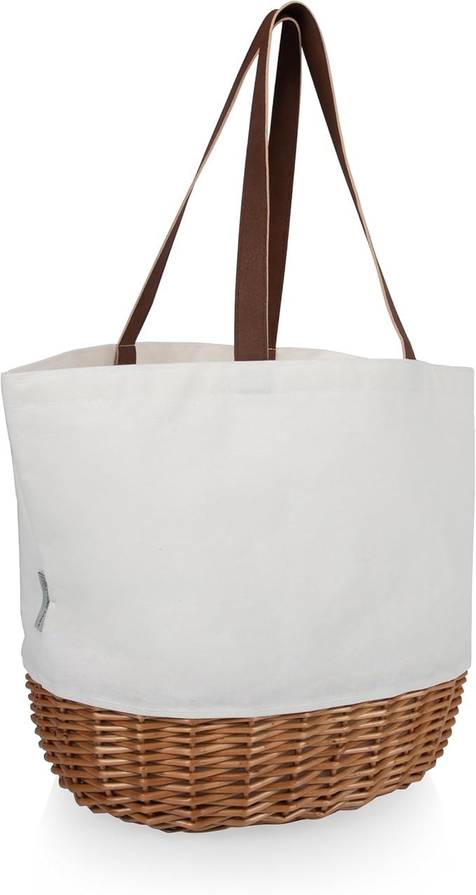 This 2-person picnic basket tote features a charming combination of a woven wicker-style base and a soft canvas upper body, offering a harmonious balance of rustic elegance and contemporary function. Measuring approximately 1.4" (W) x 13.4" (D) x 14.75" (H), this bag provides generous space for lunch boxes, fruit, drinks, napkins, and compact picnic essentials for two.