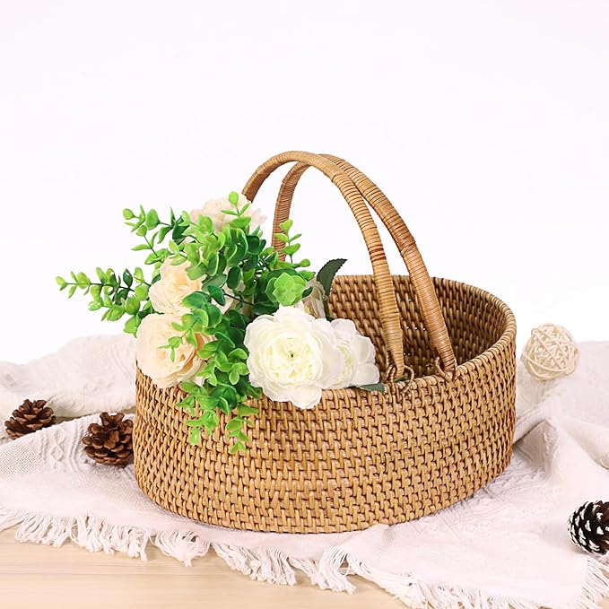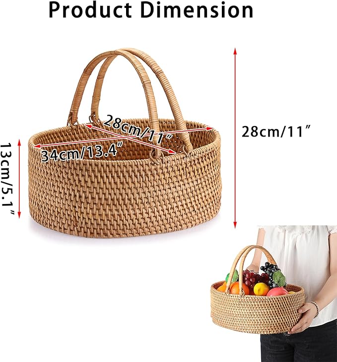 Sleek Look with Perfect Size: Measuring 13.4“(L)x11"(W)x5.1"(H) and featuring a classy yellow color and elegant oval shape, this wicker basket has a spacious interior to hold most your picnics essentials or gifts. An ideal addition to any farmhouse, rustic, boho or vintage decor.