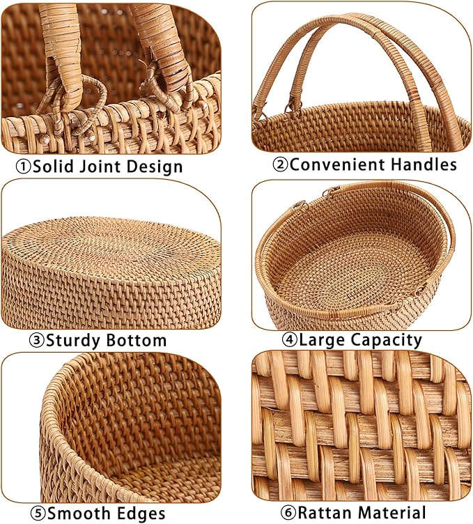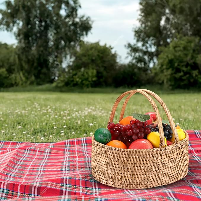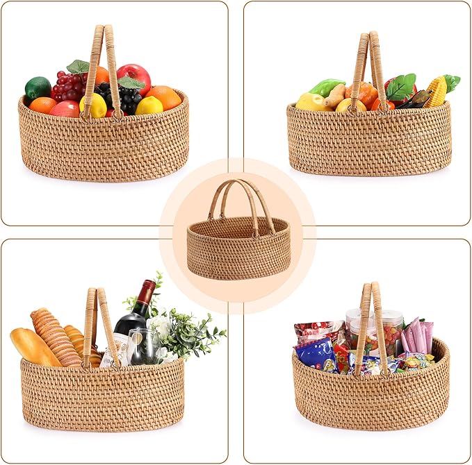 Versatile Use: This decorative basket is multi-functional for holding fruits, sandwich, bread and vegetables. Not only can you organize picnic stuffs like strawberries, apples, grapes, wine bottles, beverages, snacks, but also use this storage basket for wedding decorations, floral arrangements, party favors, toys, candies and holiday treats.
